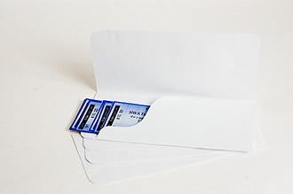 Vtix also inventories white unprinted Ticket Jackets which are better suited for will-call. They also can be purchased in minimum quantities of 100. They are a booklet style enclosure with a right inside flap to hold tickets in place. They also can be overprinted individually using a laser or colour laser printer with a small style envelope feed.